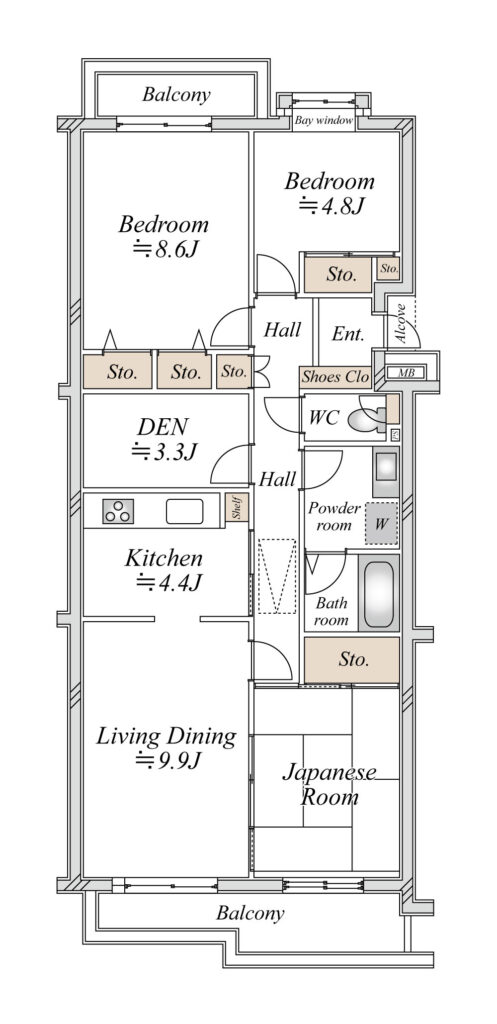 | 専有面積(内法/壁芯) | 88.35㎡/92.04㎡ |